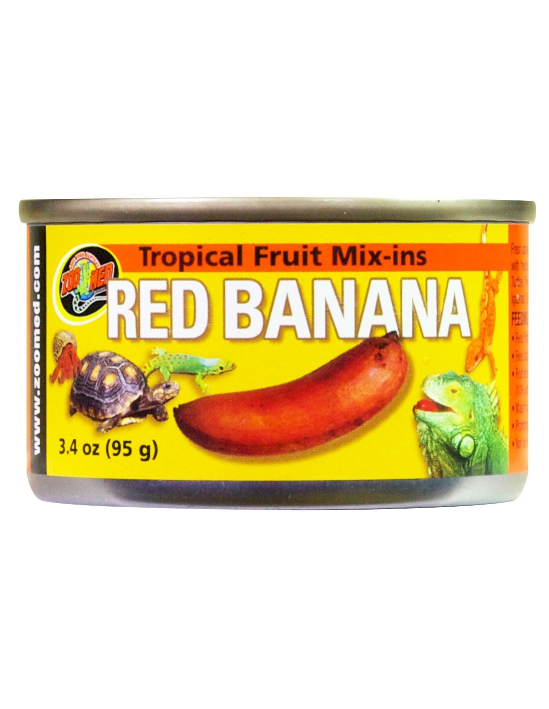 Tropical Fruit Mix-ins Red Banana de Zoo Med, bananes rouges fraîches en conserve dans leur jus, à mélanger avec le régime alimentaire frais ou en granulé de votre reptile.