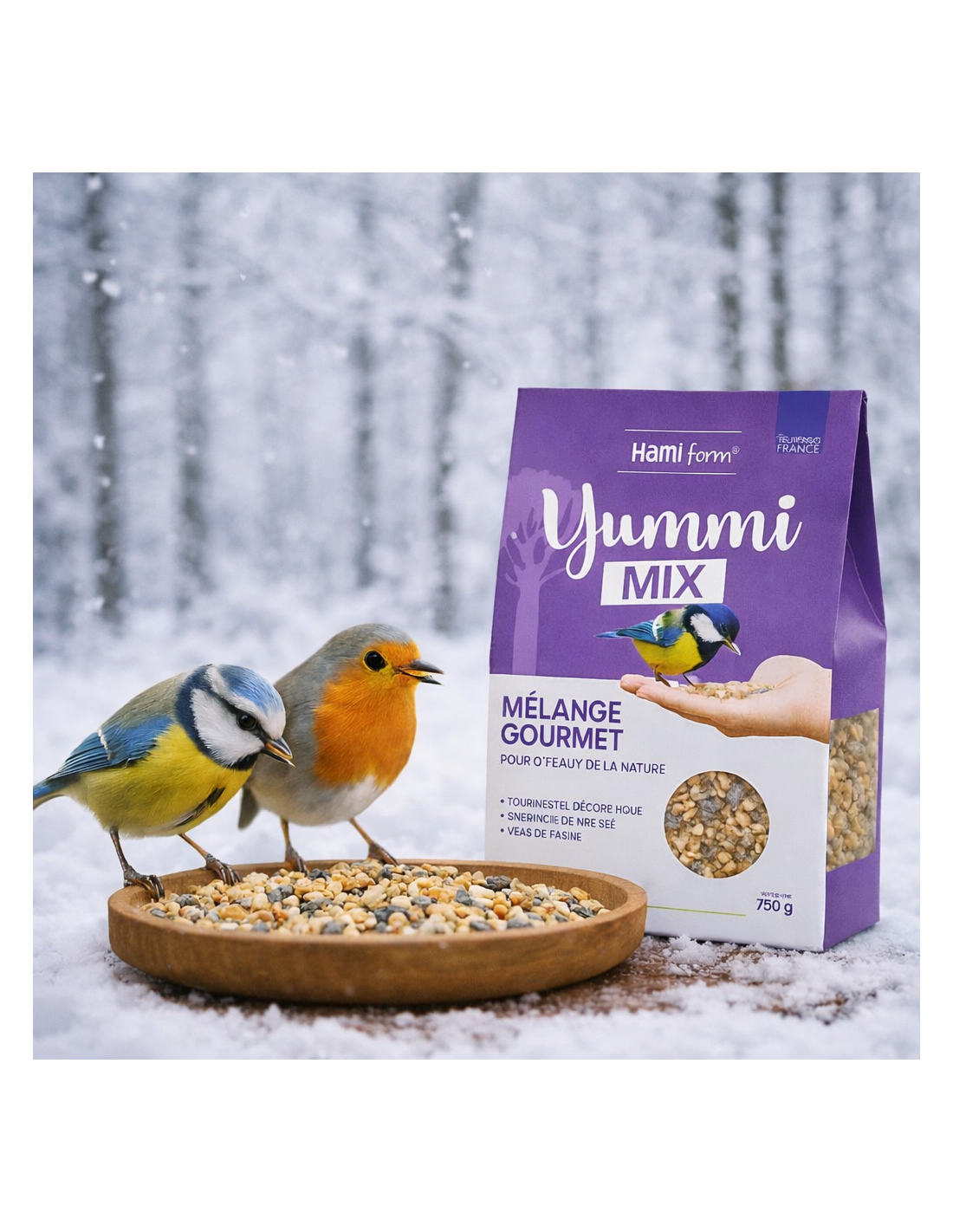- Mode d’emploi simple : à saupoudrer dans une mangeoire, sur une table de nourrissage ou au sol (zone propre et dégagée).