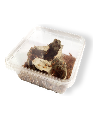 Résistance et adaptabilité : Shelfordella Tartara présente une remarquable capacité à supporter des températures variées comprises entre 20 °C et 30 °C, ce qui facilite son élevage dans différents environnements. De plus, cette espèce se reproduit rapidement, assurant un renouvellement efficace du stock et une disponibilité constante des proies.