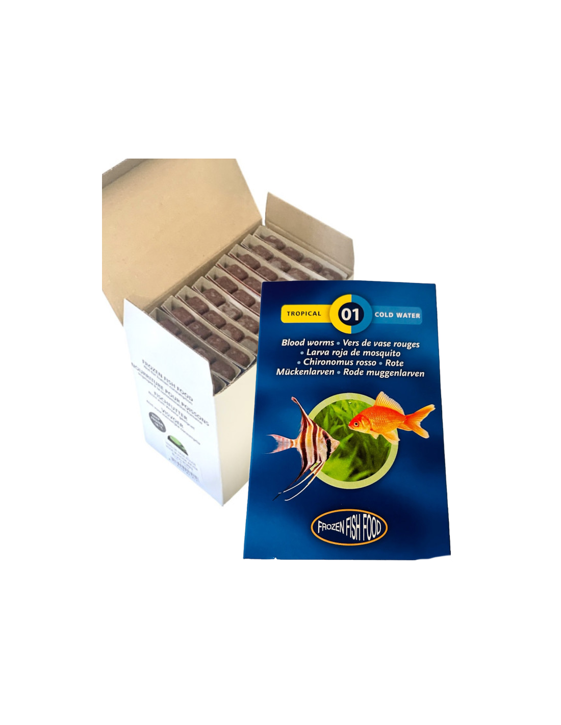 Ce carton contient 10 plaquettes de vers de vase congelés, chaque plaquette pesant 95 g. Idéal pour nourrir poissons et reptiles aquatiques, ce conditionnement garantit une alimentation variée et équilibrée.