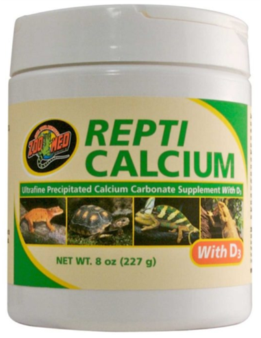 Repti Calcium® est un supplément de carbonate de calcium précipité ultra-fin avec vitamine D3. Sans phosphore, il est destiné aux reptiles et aux amphibiens. Sa forme unique et sa grande surface par gramme augmentent la biodisponibilité du calcium.